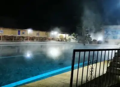 旧诗云:“传说温泉水,丹砂地底藏。堪医俗气骨,好助热