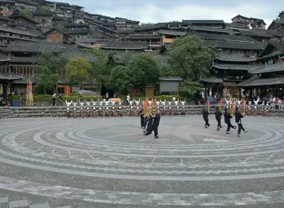 郎德上寨坐落在苗岭主峰雷公山麓的丹江河畔,距黔东南州府凯里市27公里,距雷山县城17公里。公元1855-1