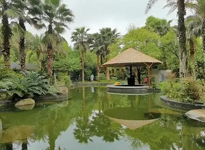 东山公园是一狭长的公园,公园内层层向坡下延伸,约有五、六层,就像梯田,只是每一层比较宽都有竹林、花草、树木和水池,以及石桌石凳或廊亭,许多人在此打牌、下棋、聊天(在贵阳无论是白天还是晚上经常看到人们在大街打牌、下棋比较悠闲),有一廊亭内坐满了人,大都是中老年人,人们拿着麦克风对唱,咱也听不懂唱的什么,问一位老者得知是在唱山歌。