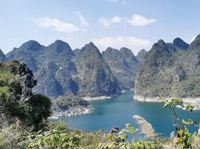 万峰湖景区是群山中的一个水库,风景没得说,空气极好。就是色彩单调,满山绿色,水也是绿色