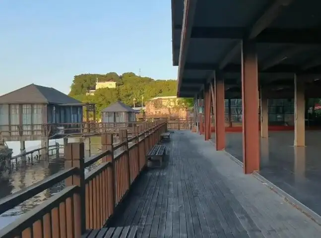 友邦休闲山庄,坐落在清源山北麓的风山龙眼林之中,环山抱湖,生态自然,风景怡人,夏天是避暑的好去处,秋天是撒欢儿的好地方。湖中的一座座木原色的木屋组成的建筑群像是一片被遗落在山中的“红棕林”。这片与湖岸木桥相连的“红棕林”里,是一个个极具特色的水上餐厅。