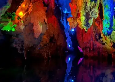 一、二进龙宫被誉为全国最长、最美的水溶洞,为龙宫三绝之一,其蜿蜒于龙宫奇峰异谷之下,堪称一绝。 其中一进龙宫长840米,由群龙迎宾厅、浮雕壁画厅、五龙护宝厅、水晶宫、高峡幽谷宫五个部分组成,乘船穿行于溶洞暗河之中,头顶斑斓的洞中奇景若绚丽的夜空,与平静水面的倒影交相辉映。 二进龙宫全长400米,共分为四个大厅。洞内景观粗旷,钟乳怪...
