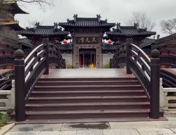 三元宫位于大连市长海县大长山岛镇东山A园28号,始建于明末清初,建筑面积3600平方米,距今已有400多年历史,为辽南地区最大的道观,仿古建筑,宫殿连环,气势恢弘,掩映于苍松绿槐之中。站在三元宫的大门口,面临烟波浩淼的大海,背倚蓊郁的青山,景致颇佳。三元宫分前、中、后三进院。进入宫门是前殿,正面由5个殿组成,中为观音殿,供奉圣观音、吉祥观音、杨枝观音;观音殿...