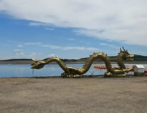 巨龙湖风景区位于阜新市彰武县城东北后新秋镇乐园村西北1公里处,水库汇水面积为27.5平方公里,主坝长1,825米,坝高55米,顶宽4.5米,总库容量1,440万立方米。湖岸有沙底浅滩,是天然浴场。旅游观光、灌溉防洪、水产养殖、休闲娱乐,风力发电一应俱全。巨龙湖长年水面清澈,碧波荡漾,恰如一面晶莹光洁的明镜,镶嵌在绿树葱茏的群山之中。库区空气清新,风光旖旎,宛如仙境...