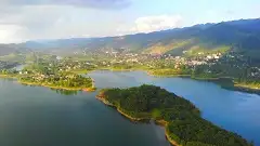 嘉陵江东西关的两个大河湾连环紧扣,形若天然太极图,故称“太极湖”。一湾流长22公里,为阳鱼,二湾流长18公里,为阴鱼,东西关电站,拦江为湖,旅游胜景由此而成。 太极湖湖水碧蓝,山水相映,湖岩有凤凰抱蛋、岩墓群、猴子石、西关寨、桃竹寺、汉王墓、龙泉洞、仙人洞、汉初县城遗址、唐窑遗址、狮子山、东关寨、石捶打石鼓等景色与&ldq...
