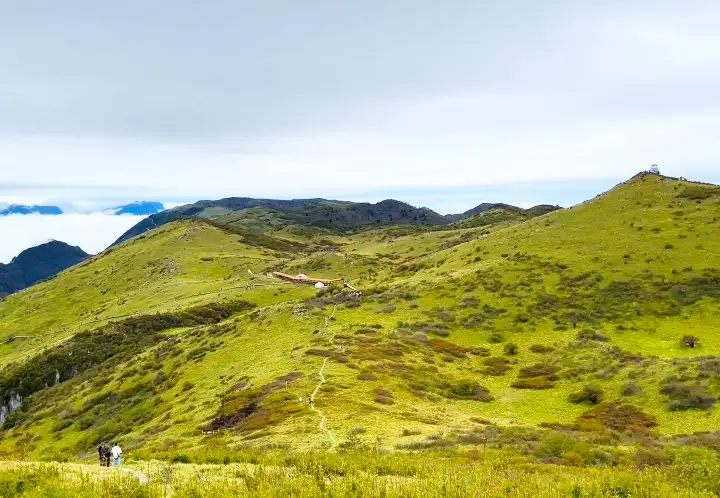 紫柏山高山草甸遍布于海拔1500-2200米之间山坡或山巅,草高50-80厘米,多系灌、草本花卉和中草药,草质柔嫩,总覆盖率达95%。夏秋时节,风清气爽,草木葱茏,山花烂漫,绿草如茵,晨曦似锦,薄雾如纱,含露低垂的草尖,随雾气升腾渐渐直立。远视之,如烟波浩渺的绿色湖泊,常令游人沉醉不知归路,达到物我两忘的境界。紫柏山高山草甸绿草如茵,深呼吸一口,清香的草木味扑鼻而来,让...