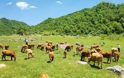 狮子沟牧场距离县城30余公里,出县城西去,过张良庙,翻光华山,在紫柏山下。来到狮子沟牧场,顿觉清爽、深感散涣,远离了喧嚣,亲近了自然,没有了高楼大厦,目睹的是一眼不见边的草地山坡,看到的是牛羊悠闲自得,仿佛就是一幅幅油画跃入眼帘。蓝蓝的天空,白云朵朵,微风吹拂着草地,成群的牛羊或结伴而行,或低头安逸地吃草,或懒散地信步游走,或静卧草地小憩,或高深莫测地肃立...