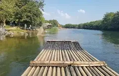 杭州双溪漂流全程一个小时左右,江两岸虽然没有特别的壮观景色,停车费十元,电瓶车十元,一次性防水裤三元。景点设计的还有点新意,是坐着牛车去码头漂流的,到了码头坐一个竹筏顺着溪水往下漂,中间设计了两个坡度,不过水流太平缓不够刺激。 杭州双溪漂流景区,位于杭州西北30多公里处的余杭区径山镇双溪。这里交通便利,可以东去西湖,南登径山,西...