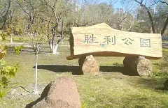 胜利公园位于胜利街东、跃进河南,面积34500平方米,项目投资1100万元。园路及铺装面积22000平方米,绿地面积12500平方米。胜利广场是城市轴线(胜利路)上的重要节点,其北侧是老城,南侧为发展中的新城,所以,胜利广场无疑是联系新老城区的纽带。 胜利公园铺装采用五莲红、芝麻白、将军红、芝麻黑等不同颜色的花岗岩石材,铺装出清晰的v形(“胜利...
