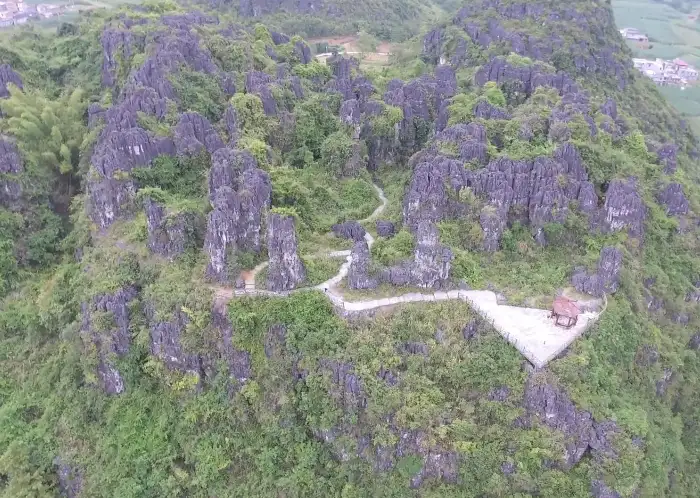 金钗石林地处河池市、来宾市、南宁市交界的金三角,石林形成于2.8亿年前,景区分为大小两个石林,石林景区中石头千奇百怪,龙腾虎跃,婀娜多姿,令人目不暇接。石柱多呈上、下基本等大的方柱状、圆柱状、残墙状。其中大石林被称为石林城堡,它是广西至今发现的最大的石林城堡。景区中有2.8亿年的树化石,石峰上长着许多攀爬植物和灌木,绿意葱葱,有的石柱高达20-30...
