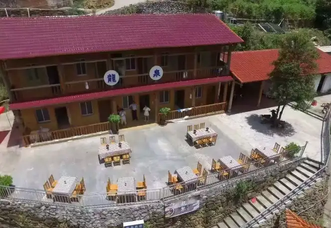 龙泉山庄是广西三星级农家乐,是三声部民歌传承基地,占地面积2086平方米。依托安律山山下一个地下喷泉,建设了龙泉游泳池一个,面积105平方米。此外还有表演舞台,气排球运动场,面积800平方米的生态停车场,建筑面积2295平方米的双门面三层楼房一栋。山庄左边是一片几百亩的玉米地,右边是百亩果园,弄律山喷泉水从山庄围墙流过注入大门面前的小河,庄内绿树成荫,吃...