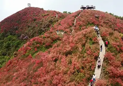 白竺青草湖位于白竺乡黄岗村,其虽名为“湖”,实则为“山”。山不在高,有花则名。四月天翩翩而至,在映山红盛放的时节,青草湖山顶被大片大片的映山红点缀得姹紫嫣红。从远处望去,连绵的山峦披上了绣花锦被,沿着山的脉络波涛起伏,引得来这里观赏的游客络绎不绝。青草湖山顶随处可见野生野长的映山红。她们有的开在你走过的路旁,有的开在悬崖边上,有的甚至开在...