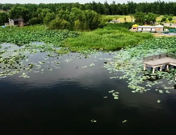 团结水库位于沈阳市辽中区,水库犹如一颗璀璨的珍珠,镶嵌在湖波荡漾的蒲河生态廊道上,它沿岸滩涂香蒲缠绵,秀苇连天。水间莲花含笑伫立,千般妩媚,娇羞欲语,绿叶相映,袅袅婷婷、深情款款。珍珠湖生态湿地系统完整,湖中鱼儿相嬉,水天一色,百鸟翔集,悠然而栖。团结水库波光浩淼,湖水清亮如镜,清澈蔚蓝。阳光照耀着碧绿的水面,清风微微,水面顿时波光粼粼;湛蓝的天空中,洁...