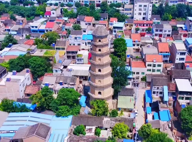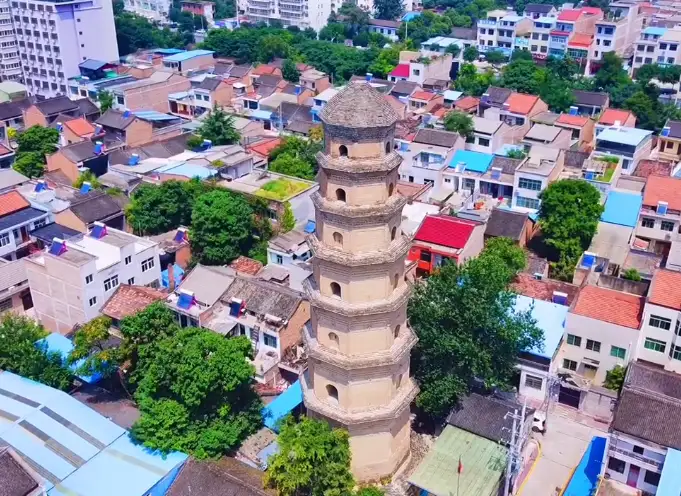兴平北塔位于咸阳城西25公里处兴平市东城街道办事处北寺巷。原为清梵寺内建筑,塔建于唐贞观元年(公元627年),塔随寺名,初称清梵寺塔。梵清寺宋代改称保宁寺,塔亦遂称保宁寺塔。寺、塔历经唐、宋、明、清各代多次修葺,距今已1300余年。塔为阁楼式砖结构,平面八角形,七层,底边长4.35米,残高38.6米,楼阁式。北塔塔身每层南、北面辟券门或假券门,真假逐层上下相间...