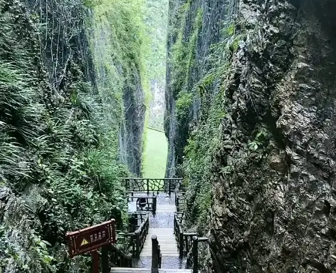 张家界朝阳地缝位于慈利县朝阳境内,是世界上最长的“一线天”奇观,全长5公里,游道3000多米,垂直深度近200米。为赵家垭库区流水经几亿年冲刷而形成的崖缝,两崖最窄处仅一米多宽,景色集奇、秀、险、野、幽于一体。景区内溪水清澈,空气清新,冬暖夏凉,四季如春;刚下地缝,瞬间就进入了一个清凉的世界。漫步在地缝底部铺设的栈道上,仿佛自己来到天宫中,与外面喧闹的...
