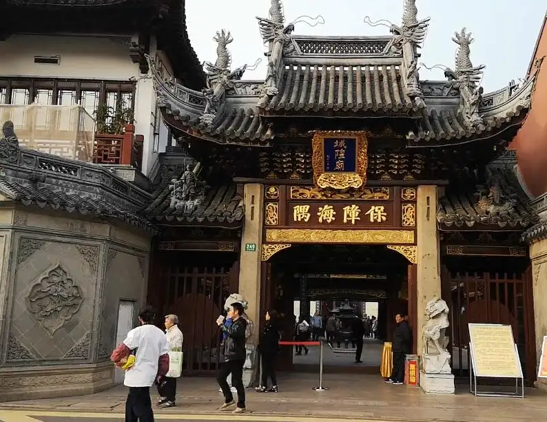 老城隍庙艺术竞技馆,内有斗鸡表演、杂技表演及霹雳书法等“中华一绝”的民俗艺术。上海城隍庙为正一派道士管理的道教宫观,又称上海邑庙,包括大殿、中殿、寝宫、星宿殿、阎王殿、财神殿、文昌殿、许真君殿、玉清宫等许多殿堂组成的。