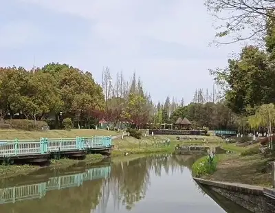 华泾公园内是小桥流水错落有致,是周边居民休息赏花的好地方,花园广场上有好多人一起随