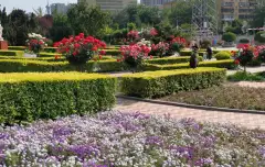 花卉园位于民心河边,身处裕华路中山路两条繁华大道中间,占地面积3.8公顷,但无论是中山路还是裕华路,你都看不到她的大门。不常来这片儿的人,压根就不知道在楼群之间,还有这样一个带着几分江南气质的公园。特别是从航拍的视角看去,更是让人惊艳于她小而美的精致。花卉园,能以花命名,自有其道理。老石家庄人会记得,早几年这里还有一个相当不错的温室,冬天里依