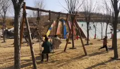 自然儿童乐园位于景区的葡萄沟,占地20万平米。在这座奇妙的山谷里,设计师运用大量天然材料,结合青山、绿野、竹林、溪水等自然环境,精心设计布局了泥坑、滑沙、滑草、摸鱼、捉虾、葡萄长廊、萌宠空间、百鸟聚集的神秘房子、可以攀爬的树屋、用原木做成的游乐设施、可供孩子尽情玩耍的丛林沙滩、能在上面自由跳跃的云朵、原始的水力发电设施、快乐的农
