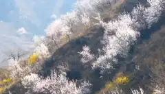 百里杏花廊道起点位于阳原县三马坊乡蟒道山脚下的大蟒沟村,全长53.9公里,走进百里杏花廊