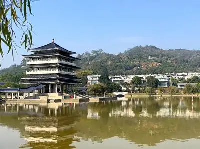 秀山登瀛桥位于云南省玉溪市通海县秀山镇文献里49号秀山公园内,又名升仙桥,瀛是指传说中