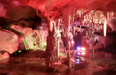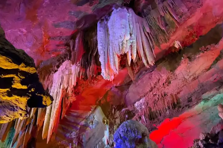 神龙宫就位于万年大源盆地中,景区全长1万余米,落差300余米,目前开放游程1600米,其中水路250米。景区以喀斯特地貌的地下溶洞、地下河流自然风光为主,溶洞是亚洲迄今为止“最年轻的岩洞”,内有被誉为“中国最美的地下河”。神龙宫荟萃了大自然的形态美、动态美、色彩美、声音美和朦胧美,具有雄、奇、灵、秀、幽等特点,是一处观赏价值较高的游览洞穴。经过