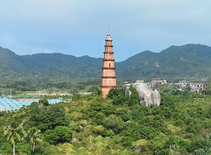 万宁青云塔,位于万宁市万城镇东南2公里的山尾岭上。 青云塔体为八角形,用火砖和零星石料砌成,塔高约27米,分7层7檐。从底层西门进去,可仰望塔顶,纵观塔腹全貌,领略古塔的高超建技。青云塔因建在山尾岭上,当地人也称“山尾塔”。青云塔是海南现存的稀有古塔之一,是万宁著名胜景之一,已列入省重点保护文物。据《万州志》载,青云塔前身是文魁塔,始建于清朝康熙五