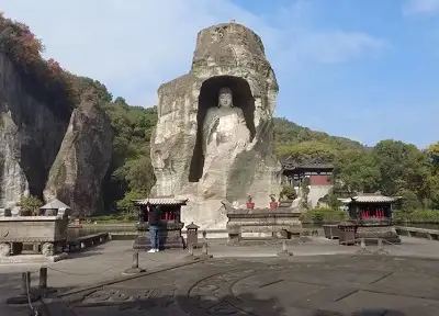 大佛寺风景区在南明山与石城山之间的山谷之中,寺内有大弥勒佛石像,寺外有隐鹤洞、锯开