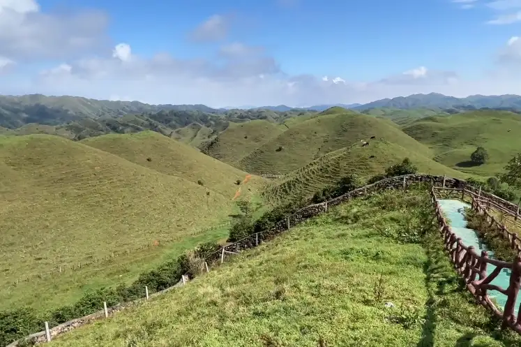 城步南山牧场位于城步县城西南80千米处,从县城乘车可直达山顶。景区位于雪峰山脉南段,绵延80余里,人称八十里大南山。她得天独厚,平均海拔1760米,像一块碧绿的翡翠,嵌镶在湘桂边陲的崇山峻岭之上。上有48坪,48溪,坪坪芳草茵茵,溪溪清流涓涓。既有北国草原的苍茫雄浑,又有江南山水的灵秀神奇。23万亩集中连片的草山草坡,被誉为“南方的呼伦贝尔”,建有南国最大