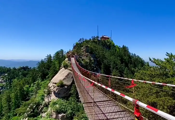 北武当山云中仙道,是通往后山的唯一悬索通道是景区内一道亮丽的风景线。仙道全长60余米