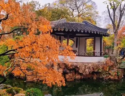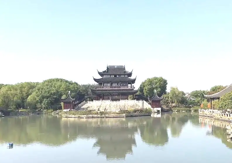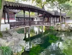 拙政园的与谁同坐轩,取自苏东坡《点绛唇•闲倚胡床》。词中有曰:“闲倚胡床,