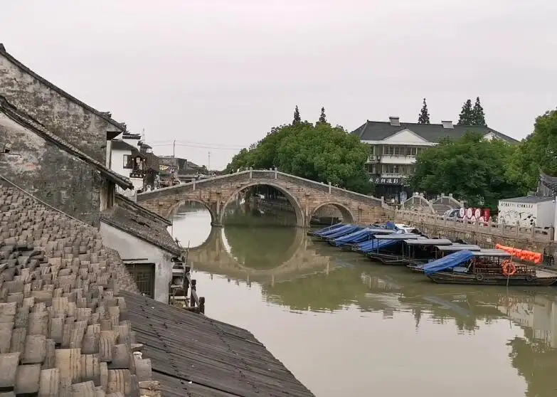 古镇内,斑驳的墙体,破旧的乌篷船,无不显示着这座古镇的历史沧桑。古镇入口处有联袂而筑的三座桥,三桥分别呈现宋、明、清三代的不同特色。东边的小桥叫方泾浜桥,因河名方泾浜而得名,为明代特色;中间横跨尚书浦上的三孔石拱桥为恒升桥,恒升取步步高升意,为清代特色;西岸一座小巧玲珑的木桥是鼋渡泾桥,为宋代特色。这三座桥又称“三桥邀月”,跨过其中的方泾浜桥和恒升桥,便跨进了千灯古镇。