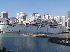 明华轮位于蛇口客运码头北面。1973年,中国购下此船,改名为“明华轮”。1983年停泊到蛇口海岸六湾,内部改造为酒店、娱乐等商业旅游项目。1984年邓公视察蛇口时下榻“明华轮”,并为该轮题词——海上世界。由于蛇口城建的发展,现在船周围的海水已被陆地取代,曾停泊在海上的“明华轮”也就成了“地上船”。