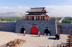 天门阵是金沙滩古战场影视基地主要景点之一,可引用评书中的一句话概括:“昼则凄风冷雨,夜