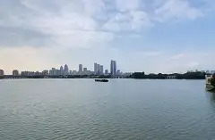 金鸡湖的李公堤是唯一的湖中长堤,保留了传统的民居建筑形态,漫步李公堤,欣赏湖心亭、凌