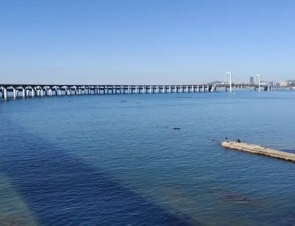 星海湾跨海大桥位于大连市沙河口区,是中国国内首座海上建造锚碇的大跨度双层悬索桥,全桥