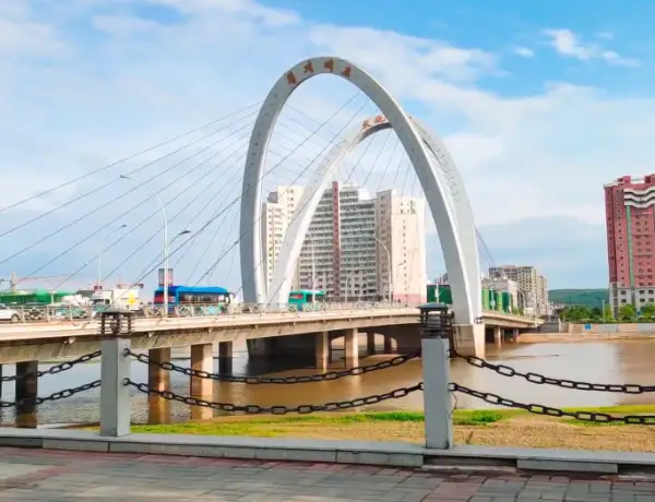天池大桥位于吉林省延边朝鲜族自治州延吉市,以长白山天池命名、2009年12月桥梁建成,桥长