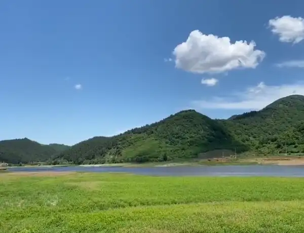 叶赫湖风景区位于辽宁省铁岭市开原市威远堡镇,这里湖水清亮如镜,清澈蔚蓝。阳光照耀着碧