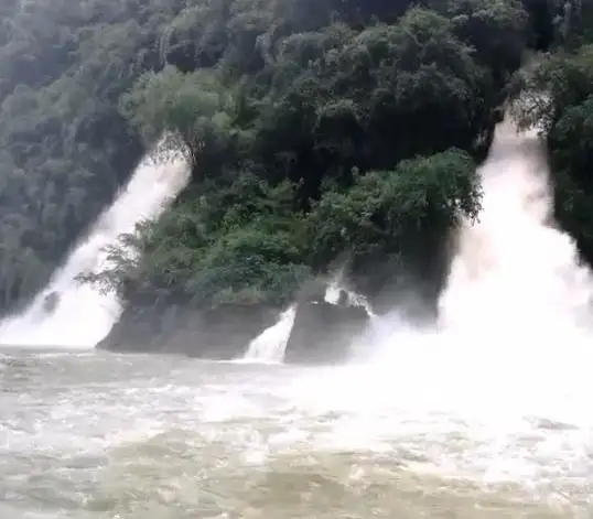 飞龙过江,乌江岩壁上一石穴涌水飞流,形成瀑布,长年不息,暴雨后大水喷射而出,白雾直达乌江对岸,景色状观。亦称“白龙过江”。