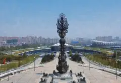 南湖丹凤朝阳雕塑高68米,总重447吨,由我国著名工艺美术大师韩美林先生设计,名称取自《诗