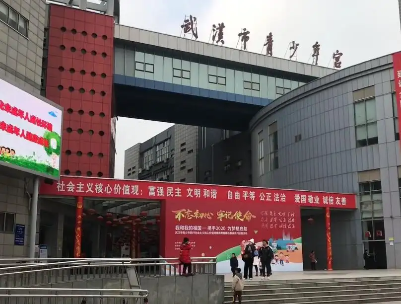 武汉市青少年宫创建于1956年,占地面积22万平方米,总建筑面积近5万平方米,青少年宫分为前、后两个区。前区为青少年宫的主体建筑——艺术综合楼,占地面积3.2万平方米,建筑面积30264平方米(含地下室), 高七层,建有722座的音乐厅,各类教学用房156间(其中艺术、体育、文化三大类培训教室92间),以及体操馆、健身馆、乒乓球馆、排练厅、视听间等综合场馆。