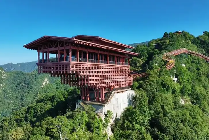 龙首阁位于天贤阁与蟠龙道之间,从远处看形似蟠龙之首,气势如虹,建筑总共四层,占地面积约42