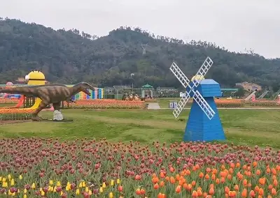 雅林现代农业观光园就在滨海大道旁,路边,一下子就看得到,郁金香品种很多,早晨过去花朵是