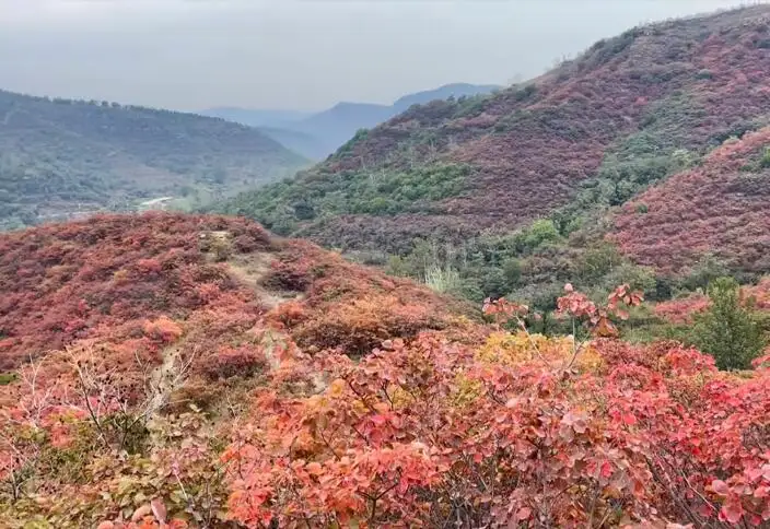 龙山锦绣谷位于山西省太原市晋源区花塔村龙山景区内,每年深秋,两侧山坡上的黄栌遇霜变红