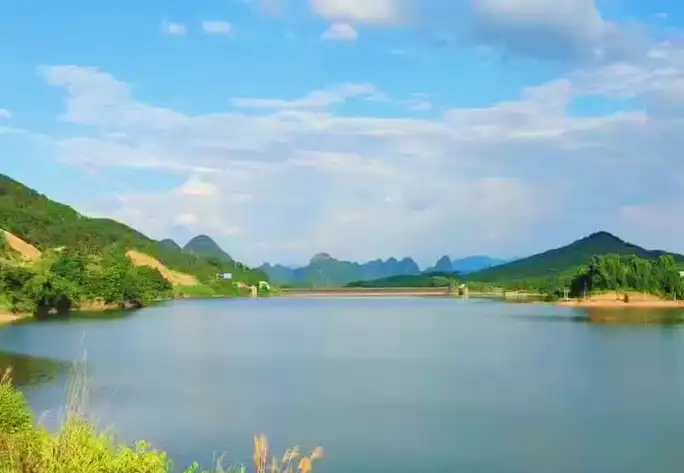 周家水库位于古镇往昭平方向约三四公里处,从古镇到水库的沿途两岸风光明媚,古老的建筑配