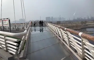 沣河玻璃栈道位于渭河河堤路咸阳段沣河入渭河口处的沣河桥上,大桥于2015年建成,2017年玻