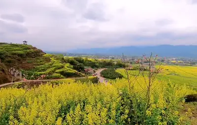 岫岩油菜花风景区位于鞍山市岫岩满族自治县桓盖线,800公顷油菜花海,石板小路绵延深入,一