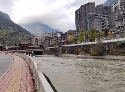 熊猫古城其实不是什么景区,而是宝兴县在4.20庐山地震后灾后重建中打造的一条商业街,因为宝兴是世界上第一只熊猫发现地,所以给这条街取名“熊猫古城景区”,这条商业街坐落在山坡上,错落有致,是步行街,车子是开不进去的,街道两旁的建筑都是仿古的,楼层不是很高,街上有商铺、超市、餐馆、酒店,主干道上还设计了小桥流水的小景观;夜晚房檐上的灯光亮