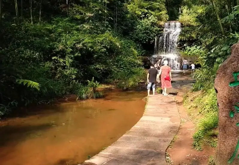山谷尽头,一帘瀑布从高高的竹林中泻下,给人以“疑是银河落九天”之感。溅起的水雾在阳光的照射下,呈现出一道道七色的彩虹,赏心悦目。忘忧谷,“清泠之状与目谋,滢滢之声与耳谋,悠然而虚者与神谋,渊然而静者与心谋”。忘忧谷,是大自然精华灵气的结晶,使人忘却了尘寰的纷繁,喧嚣劳作,也让鸢飞戾天者望峰息心,经纶事务者窥谷忘返。
