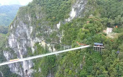 丹炉山玻璃栈道是目前国内单体最长、垂直高度为广西第一的玻璃栈道,长280米、高超180米